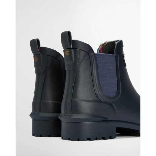 A fashion-focused twist on the classic wellington, this Chelsea-style boot features Barbour's signature tartan lining and a commando-style sole.