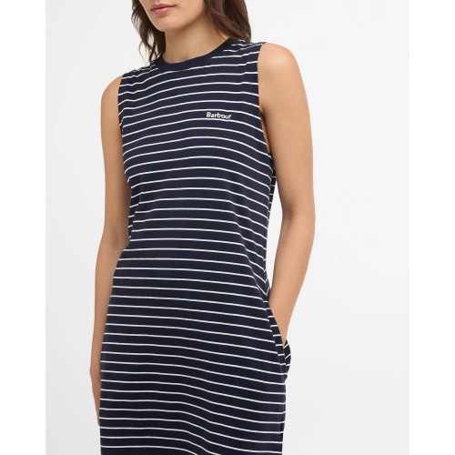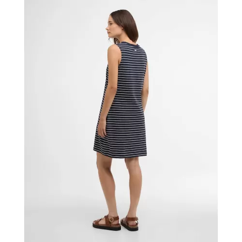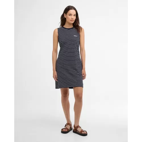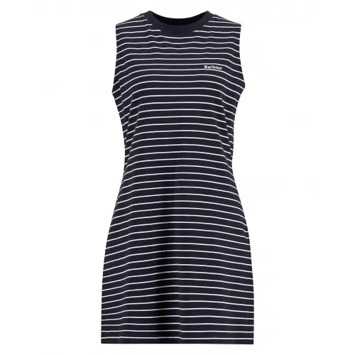 Barbour Hartland Striped Mini Dress makes the perfect base to your collection. Crafted from a stretch jersey fabrication, this simple style is complemented by a classic Barbour logo embroidery to the chest for a staple finish.