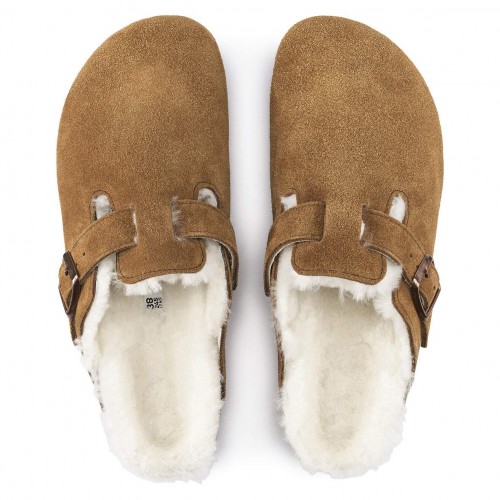 The bolder, the better! This exceptionally cozy version of the Boston clog, a classic BIRKENSTOCK model, is made of real, very high-quality suede. The natural lambskin footbed lining and strap lining exudes style and keeps feet warm. The perfect shoe for cozy winter evenings by an open fire!