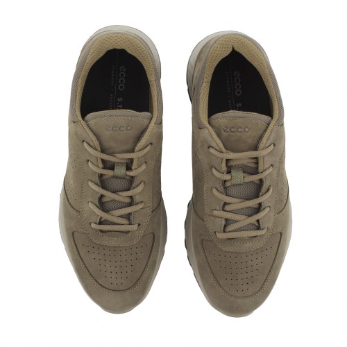 - Crafted from durable full-grain or nubuck leather, made in ECCO's own gold-rated tanneries. Comfortable breathability thanks to soft textile lining and perforation of the leather upper. FLUIDFORM™ Technolog and foot-fitted last provide anatomical support and an integral, durable bond between the upper and sole, without the compromises common with stitched and/or glued assemblies. ECCO SHOCK THRU technology in the midsole for increased shock absorption. Durable grip even on wet surfaces thanks to a long-lasting rubber outsole.